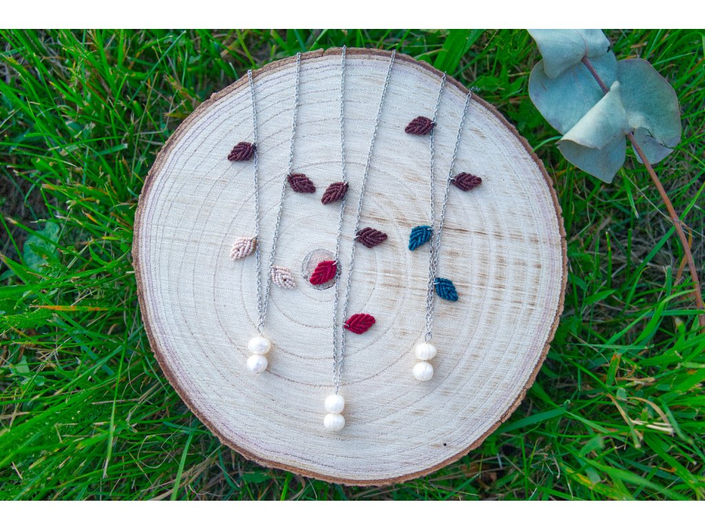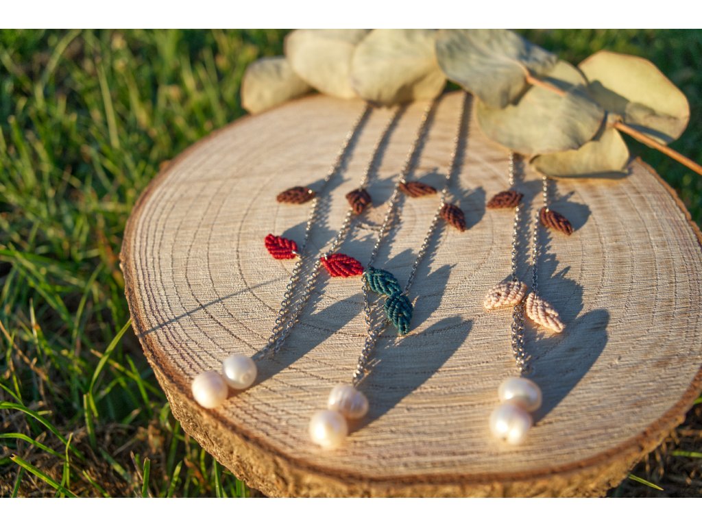 Listy jsou tvořené metodou micro macrame speciální brazilskou nití Linhasita. Šperky z ní jsou odolné a neztrácí ani po dlouhodobém nošení na sluníčku svou barvu.