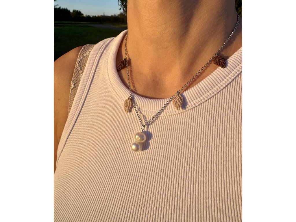 Podtrhni svou NĚŽNOST náhrdelníkem s perlou a drhanými listy v zemitých tónech