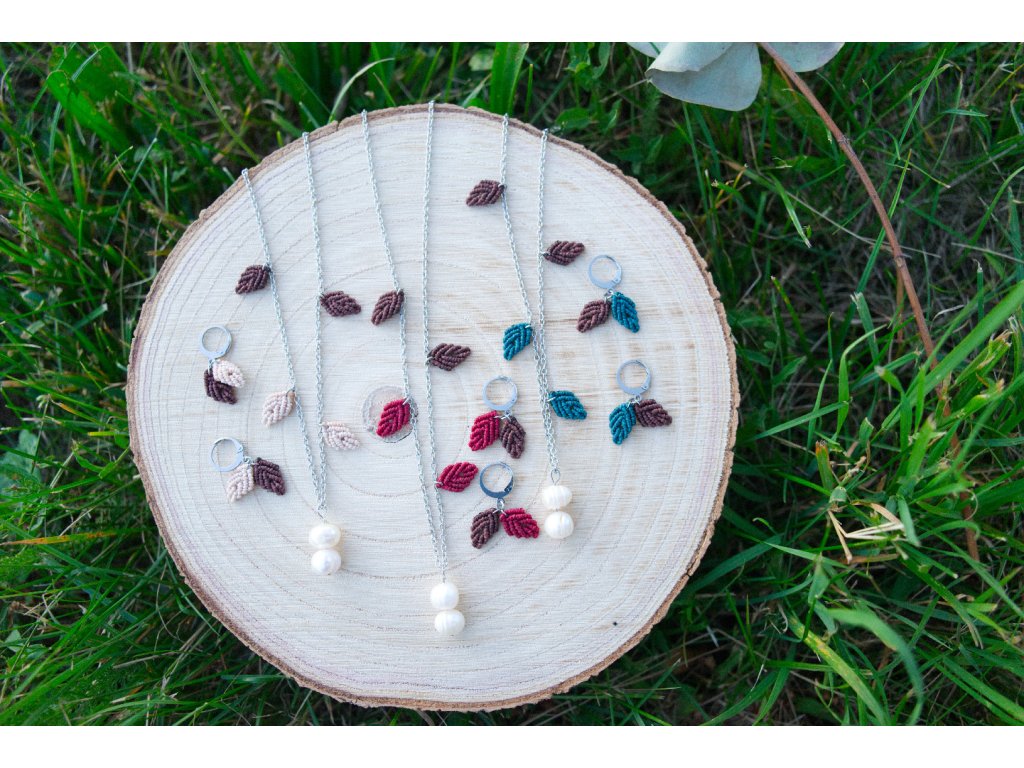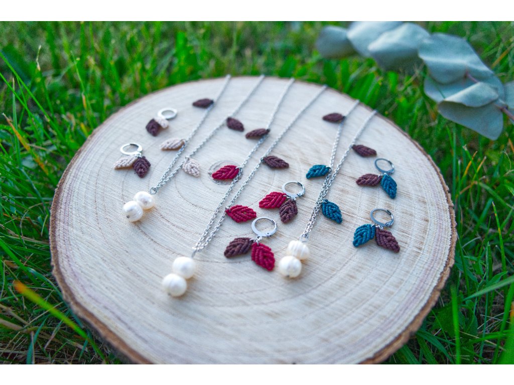 Listy jsou tvořené metodou micro macrame speciální brazilskou nití Linhasita. Šperky z ní jsou odolné a neztrácí ani po dlouhodobém nošení na sluníčku svou barvu.
