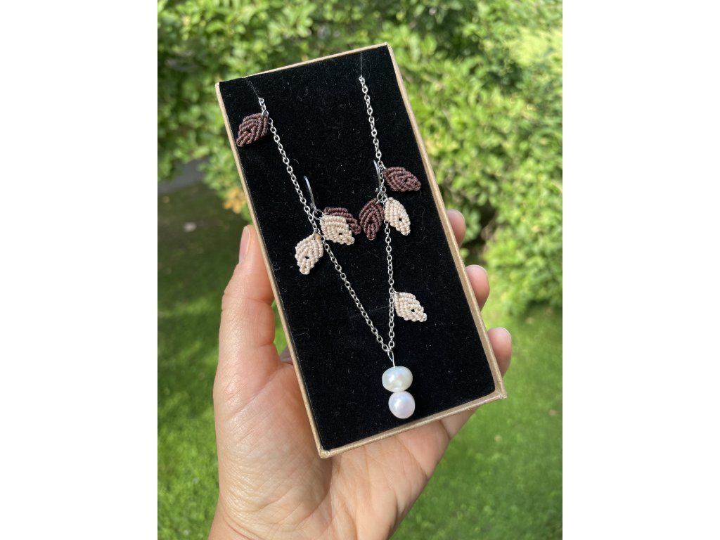 Podtrhni svou NĚŽNOST náhrdelníkem s perlou a drhanými listy náušnicemi v zemitých tónech