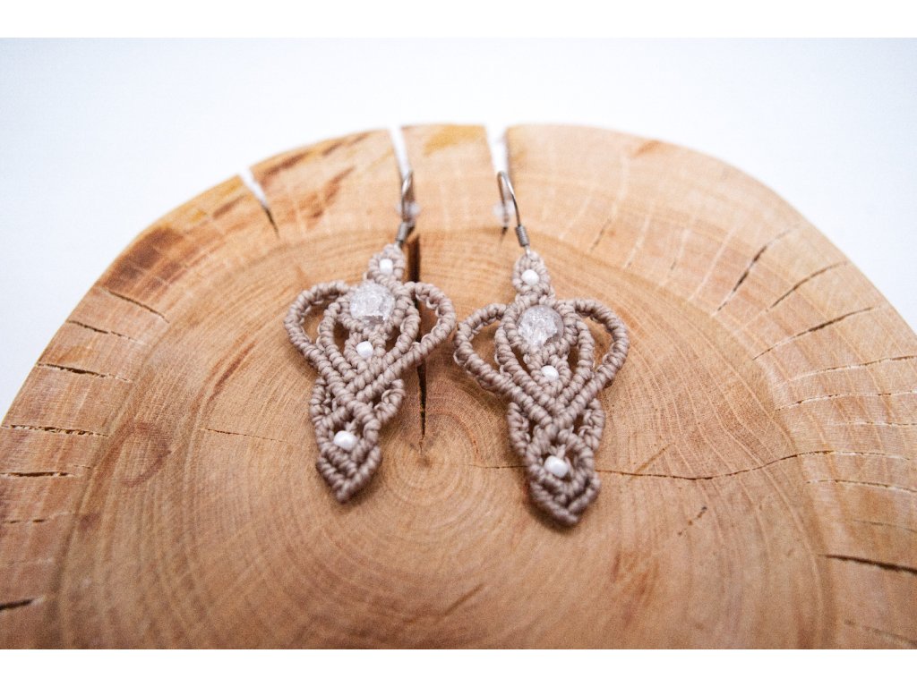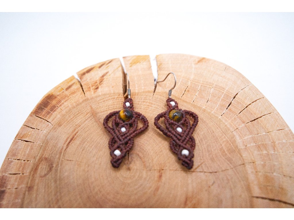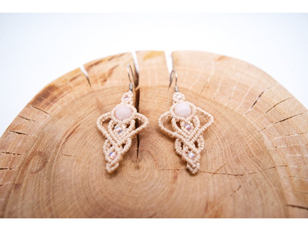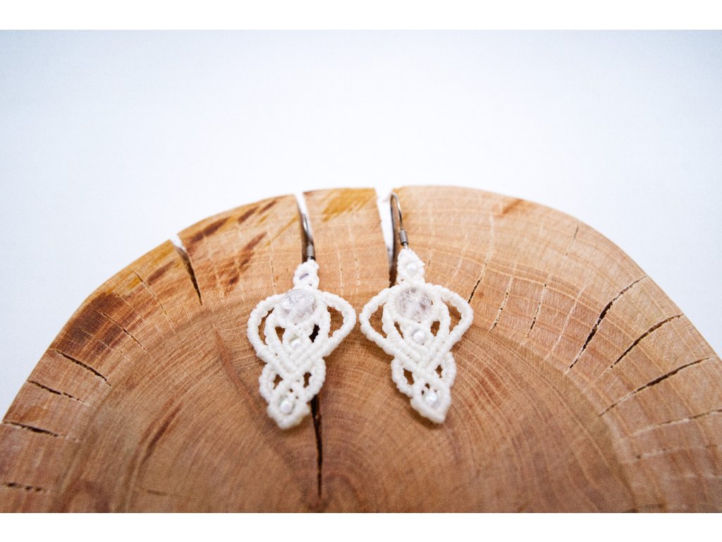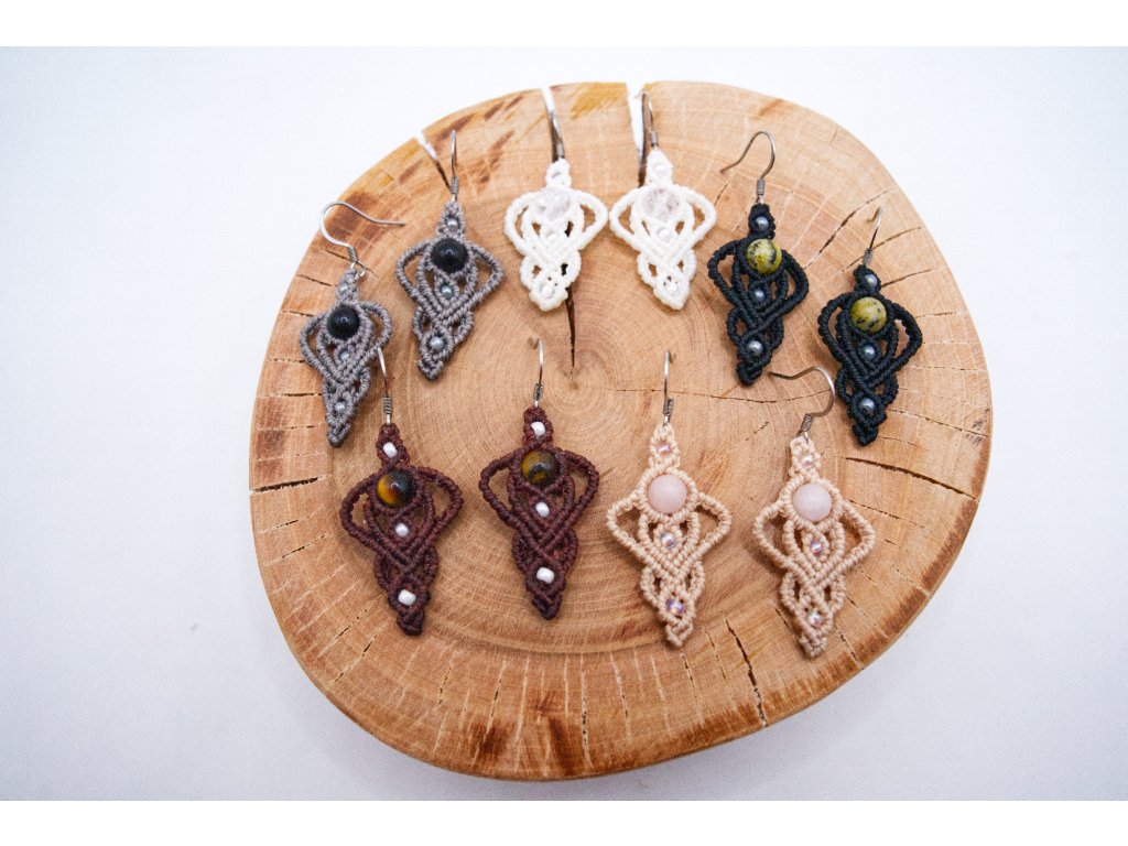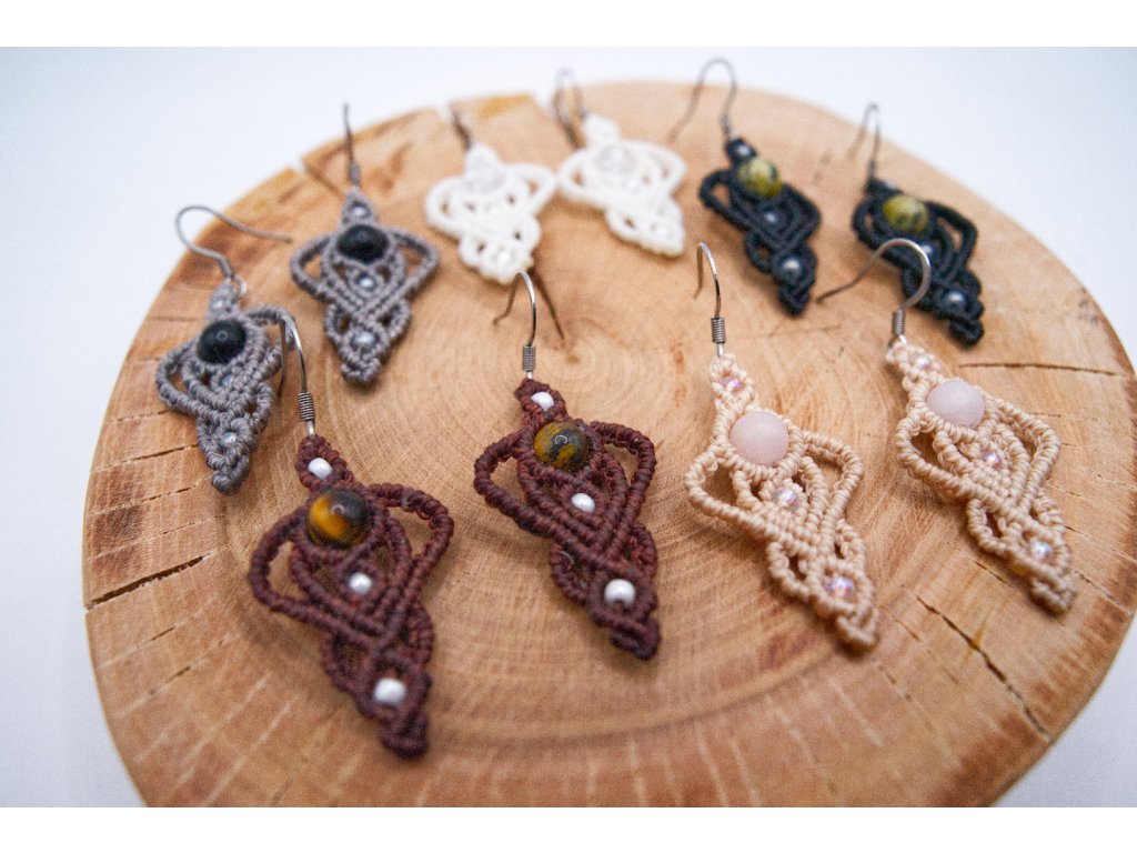 Náušnice jsou tvořené metodou micro macrame speciální brazilskou nití Linhasita. Šperky z ní jsou odolné a neztrácí ani po dlouhodobém nošení na sluníčku svou barvu.