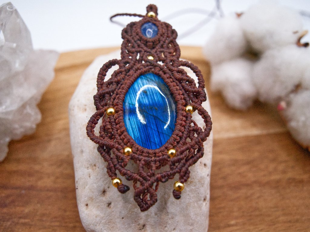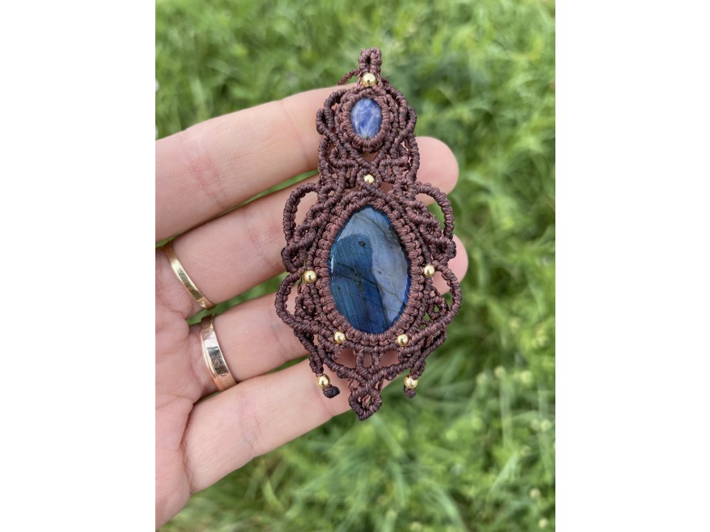 Macrame náhrdelník s mystickým Labradoritem a Sodalitem
