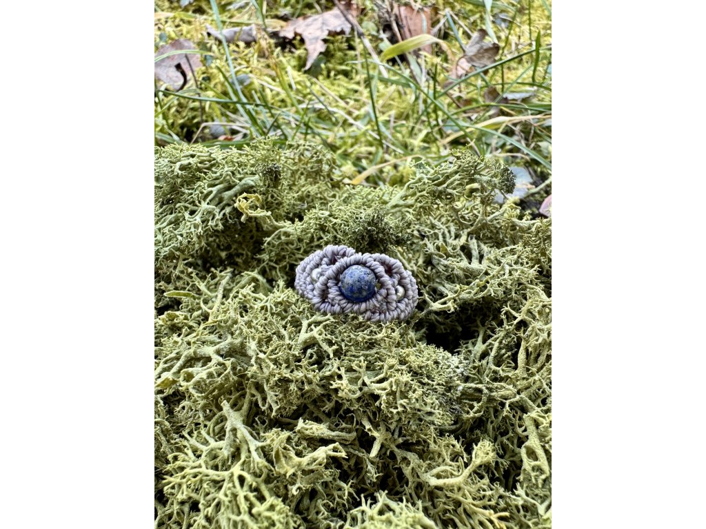 Prsten je tvořené metodou micro macrame speciální brazilskou nití Linhasita. Šperky z ní jsou odolné a neztrácí ani po dlouhodobém nošení na sluníčku svou barvu.